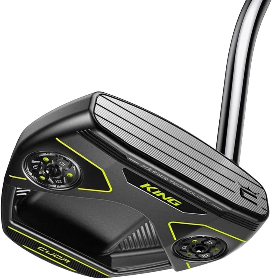 The KING Cuda putter features an oversized mallet shape with a single bend hosel that is suitable for straight back and straight through putting strokes.