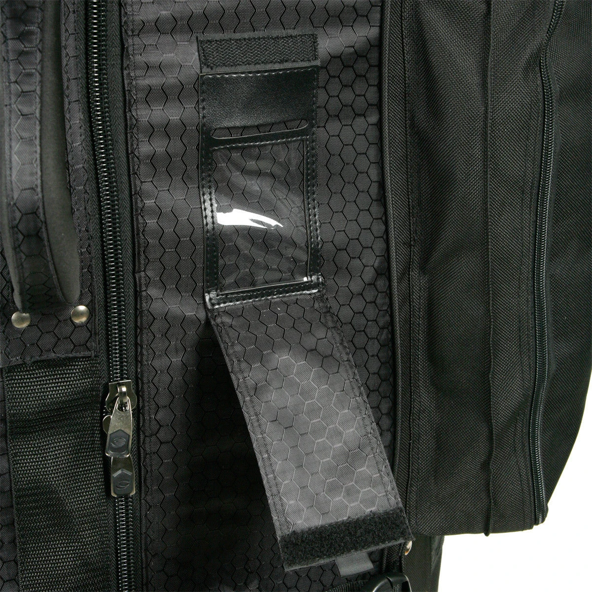 Orlimar 9.0 Premium Golf Travel Cover with Wheels feature durable 600 denier material, molded chassis with corner skate-style wheels for a smooth roll, riveted four-point lift handle, bumpers, heavy-duty large-tooth zippers, large external shoe pocket, padded club-protection top and identification holder.