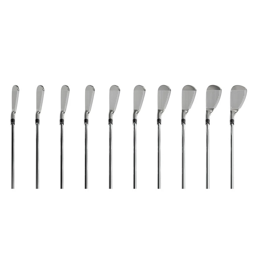 The 3i–7i feature wide grooves, ideal for longer shots in all conditions. The 8i–AW have deeper, closer set grooves which cut through grass and debris to enhance spin on approach shots. Laser milling between each groove, on every loft, enhances friction in all conditions. The result is congruency across the set, as spin, distance, and launch window remain as consistent as possible.