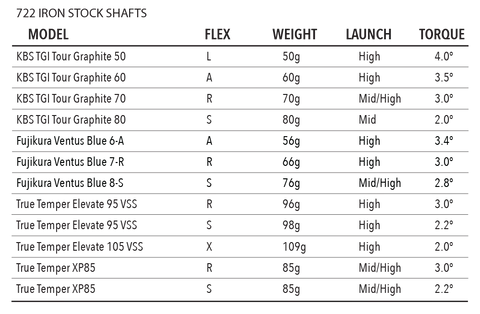 SpeedTested Shafts –Â Every shaft in the Exotics 722 Series has been SpeedTested to find the optimal custom shaft pairing for every flex, determined by robotic testing, and validated by player testing.Â